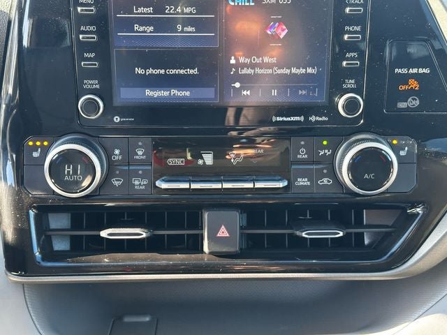 Celestial Silver Metallic 2022 Toyota Highlander XLE AWD 8-Speed Automatic 3.5L V6 DOHC Highlander XLE, 4D Sport Utility, 3.5L V6 DOHC, 8-Speed Automatic, AWD, 3rd row seats: split-bench, ABS brakes, Alloy wheels, AM/FM radio: SiriusXM, Apple CarPlay/Android Auto, Auto High-beam Headlights, Auto-dimming Rear-View mirror, Automatic temperature control, Driver vanity mirror, Electronic Stability Control, Emergency communication system: Safety Connect with 1-year trial, Exterior Parking Camera Rear, Four wheel independent suspension, Front reading lights, Fully automatic headlights, Garage door transmitter: HomeLink, Heated door mirrors, Heated Front Bucket Seats, Heated front seats, Power driver seat, Power Liftgate, Power moonroof, Power steering, Radio: Audio Plus, Rear air conditioning, Reclining 3rd row seat, Security system, SofTex Seat Trim, Speed-sensing steering, Steering wheel mounted audio controls, Variably intermittent wipers, Wheels: 18 Machined-Finish Alloy.