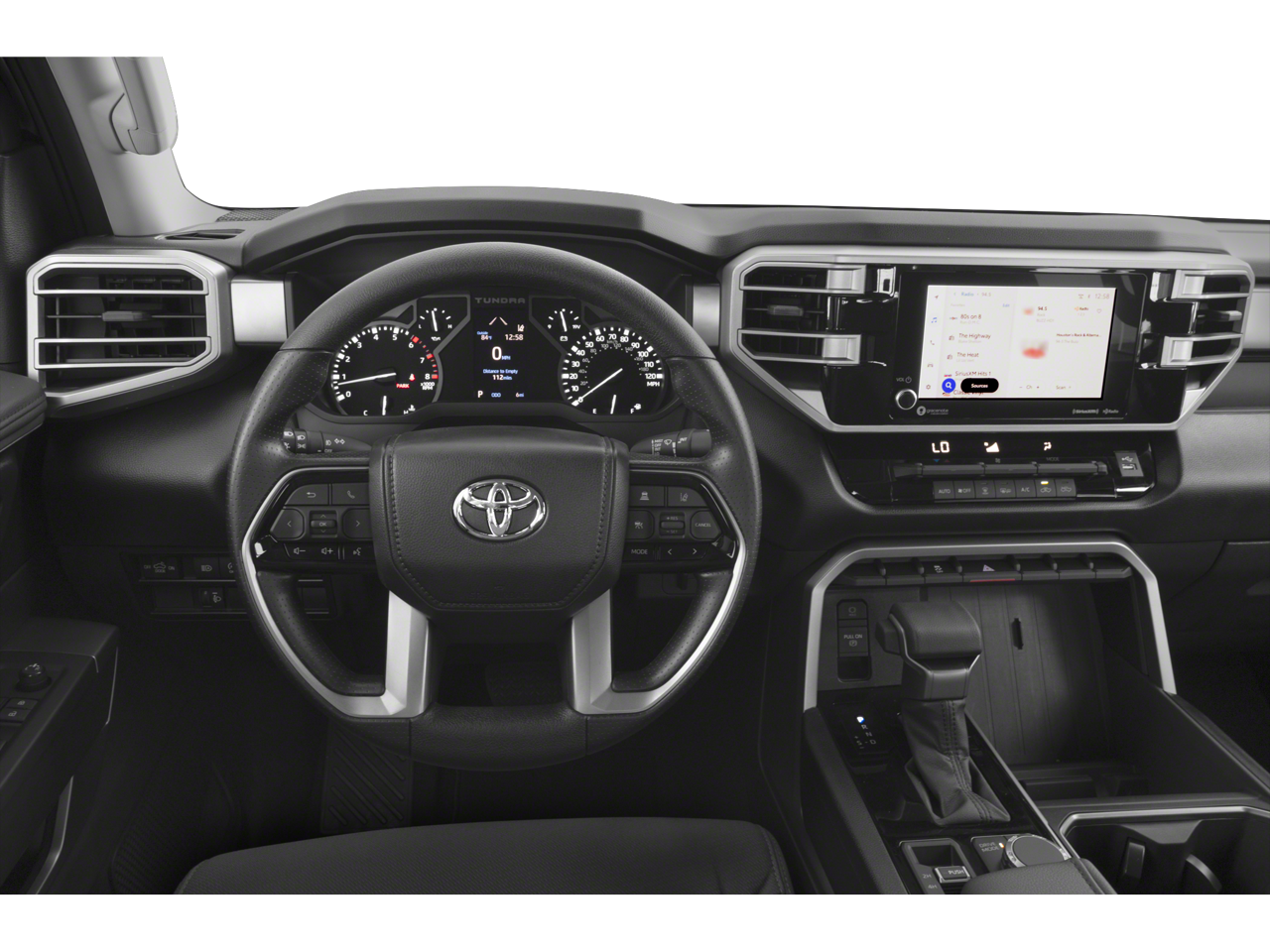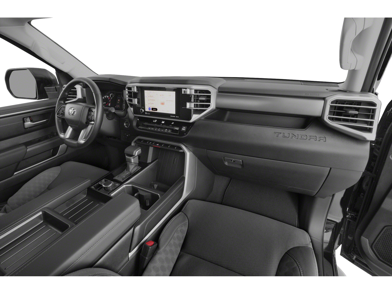 Midnight Black Metallic 2023 Toyota Tundra SR5 4WD 10-Speed Automatic 3.4L V6 Tundra SR5, 4D Double Cab, 3.4L V6, 10-Speed Automatic, 4WD, Black Cloth, 18 Alloy Wheels, 4-Way Adjustable Front Bucket Seats, 4-Wheel Disc Brakes, Alloy wheels, Auto High-beam Headlights, Automatic temperature control, Electronic Stability Control, Emergency communication system: Safety Connect (10-year trial), Exterior Parking Camera Rear, Fully automatic headlights, Illuminated entry, Outside temperature display, Power steering, Radio: Audio Multimedia System, Safety Connect, Speed-sensing steering, Split folding rear seat, Tachometer, Variably intermittent wipers.