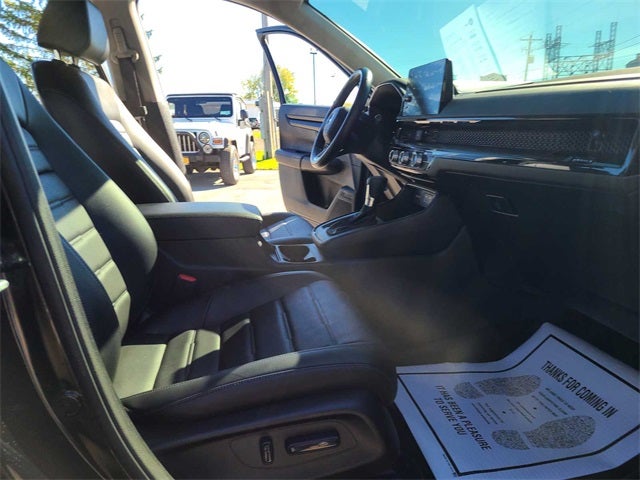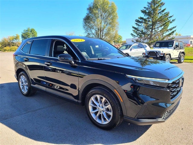 Black 2024 Honda CR-V EX-L AWD CVT 1.5L I4 DOHC 16V CR-V EX-L, 4D Sport Utility, 1.5L I4 DOHC 16V, CVT, AWD, Black, Black Leather, 4-Wheel Disc Brakes, Adaptive Cruise Control: Adaptive Cruise Control (ACC) with Low-Speed Follow, Air Conditioning, Alloy wheels, Auto High-beam Headlights, Auto-dimming Rear-View mirror, Blind Spot Information (BSI) System warning, Driver vanity mirror, Electronic Stability Control, Exterior Parking Camera Rear, Front dual zone A/C, Fully automatic headlights, Heated Front Bucket Seats, Illuminated entry, Memory seat, Outside temperature display, Power driver seat, Power Liftgate, Power moonroof, Power steering, Radio data system, Speed-sensing steering, Split folding rear seat, Spoiler, Steering wheel mounted audio controls, Tachometer, Trip computer, Turn signal indicator mirrors, Variably intermittent wipers, Wheels: 18 Sparkle Silver Metallic.